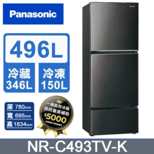 • Panasonic 國際牌496公升 一級能效智慧節能右開三門冰箱 (NR-C493TV)