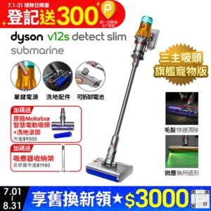• Dyson 戴森V12s SV46 Detect Slim Submarine 乾濕全能洗地吸塵器(洗地機/雙主吸頭/寵物家庭/原廠公司貨/二年保固)